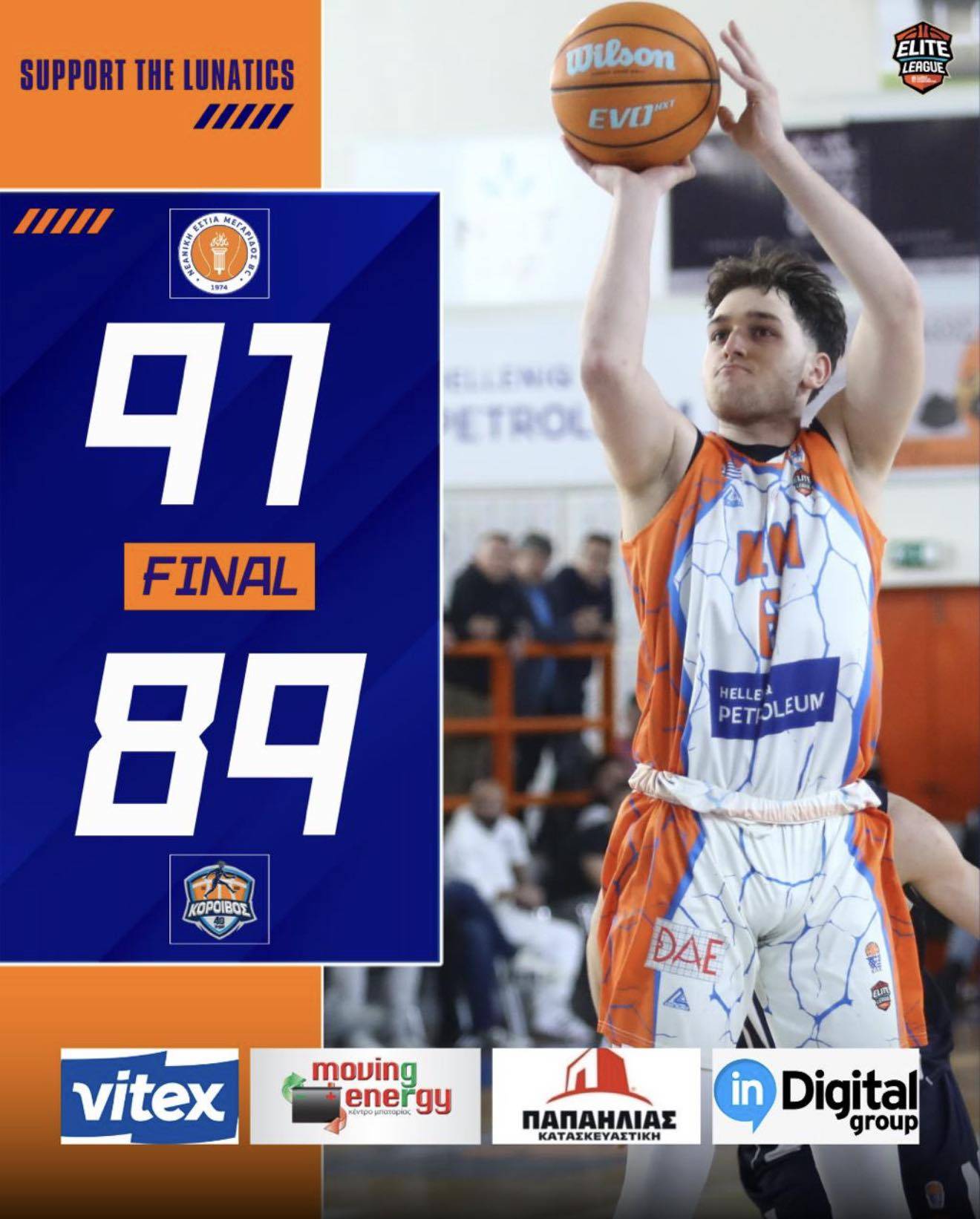 Η ΝΕΜ ήταν η μεγάλη πρωταγωνίστρια ενός εντυπωσιακού φινάλε, πραγματοποιώντας μια απίθανη ανατροπή στα τελευταία δευτερόλεπτα της αναμέτρησης. Με επιμέρους σκορ 10-1 στα τελευταία 80 δευτερόλεπτα, η Νεανική Εστία Μεγαρίδος B.C. έφερε «τούμπα» το παιχνίδι και επικράτησε του Κοροίβου με 91-89, παίρνοντας ένα πολύτιμο προβάδισμα για την πρόκριση στο Final…