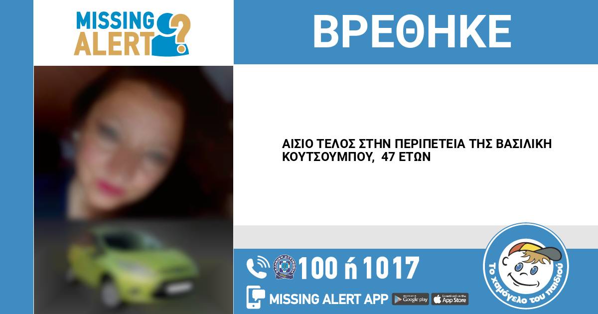 ΑΙΣΙΟ ΤΕΛΟΣ ΣΤΗΝ ΠΕΡΙΠΕΤΕΙΑ ΤΗΣ ΒΑΣΙΛΙΚΗ ΚΟΥΤΣΟΥΜΠΟΥ, 47 ΕΤΩΝ
