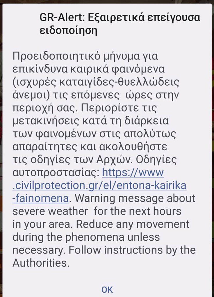 Λίγο πριν τις 11 το πρωί ήχησε το 112 στην Αττική καθώς οι μετεωρολόγοι έχουν προειδοποιήσει για μεγάλες ποσότητες νερού που θα πέσουν τοπικά.
