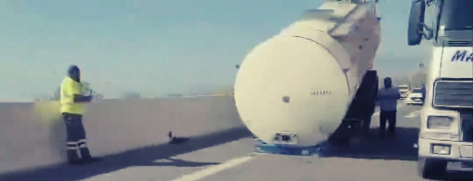 Το συγκεκριμένο περιστατικό προκάλεσε τρόμο στους διερχόμενους οδηγούς, ωστόσο ευτυχώς δεν τραυματίστηκε κανείς.