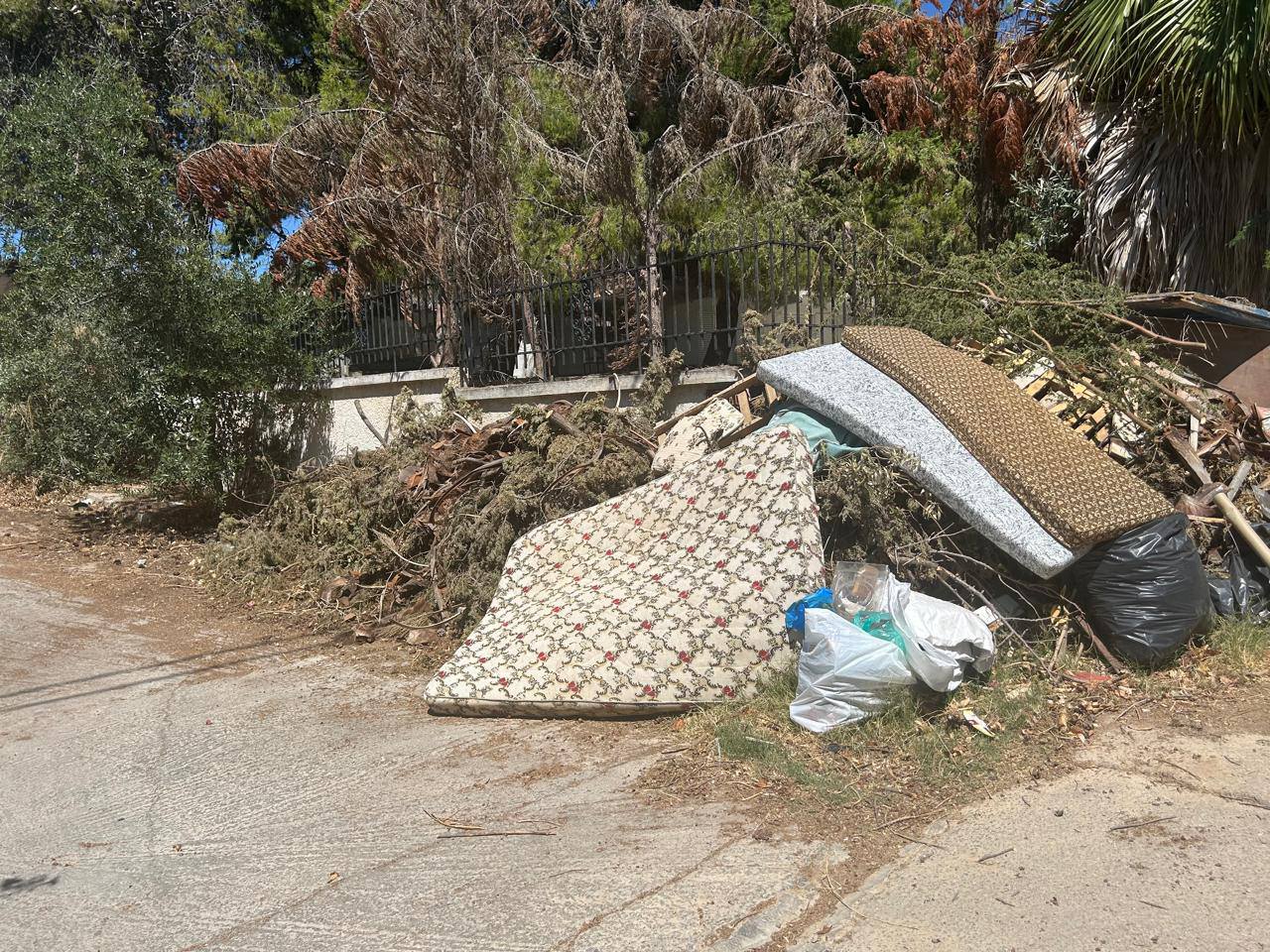 Έντονη ανησυχία προκαλεί στους κατοίκους του Αλεποχωρίου Μεγάρων η εικόνα που επικρατεί στη συμβολή των οδών Αλκυονιδών και Ήβης, όπου σωροί από ξερά κλαδιά, χόρτα, στρώματα και άλλα απορρίμματα παραμένουν για ημέρες εκτεθειμένα, σε απόσταση αναπνοής από κατοικίες. Το σημείο έχει μετατραπεί σε πρόχειρο σκουπιδότοπο, δημιουργώντας μια εν δυνάμει εξαιρετικά επικίνδυνη εστία πυρκαγιάς ιδιαίτερα μέσα στο κύμα καύσωνα που πλήττει την περιοχή και με τον δείκτη επικινδυνότητας να παραμένει υψηλός.