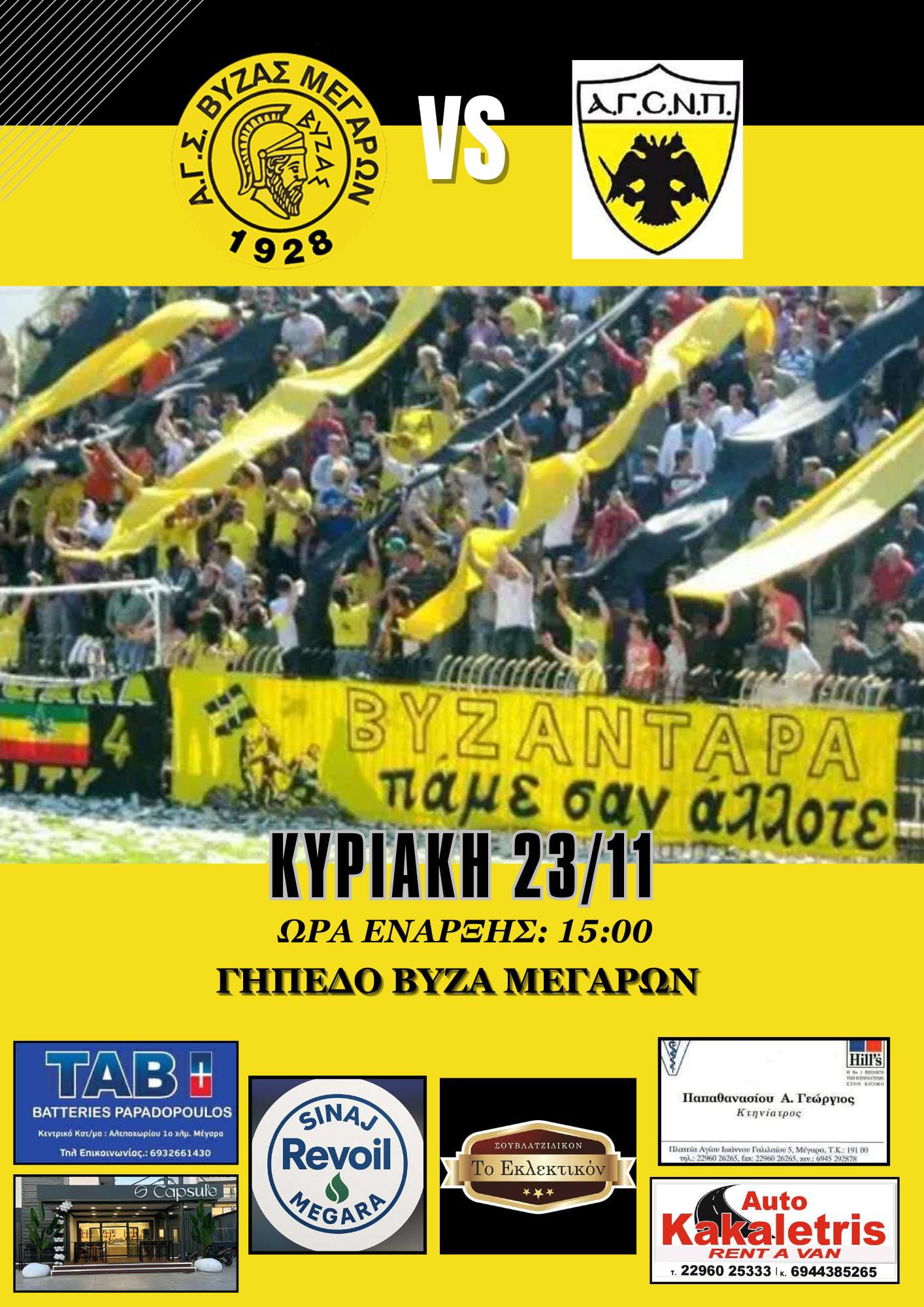 Ο ΑΓΣ Βύζας Μεγάρων ενημερώνει το φίλαθλο κοινό σχετικά με τα μέτρα ομαλής προσέλευσης και διεξαγωγής του αγώνα μεταξύ Βύζα και Νέας Περάμου.