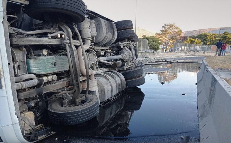 Ο οδηγός έιναι καλά στην υγεία του, ωστόσο υπήρξε διαρροή στο οδόστρωμα και πυρκαγιά στην καμπίνα του οχήματος.