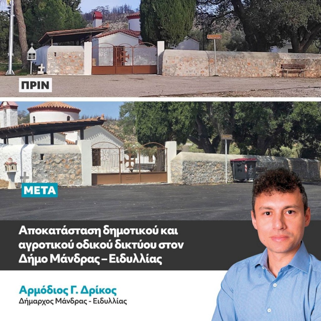 Με ιδιαίτερη ικανοποίηση και αποφασιστικότητα, η Δημοτική Αρχή του Δήμου Μάνδρας – Ειδυλλίας ανακοινώνει την έναρξη μιας εκτενούς και συστηματικής προσπάθειας αποκατάστασης και αναβάθμισης του δημοτικού οδικού δικτύου της περιοχής.