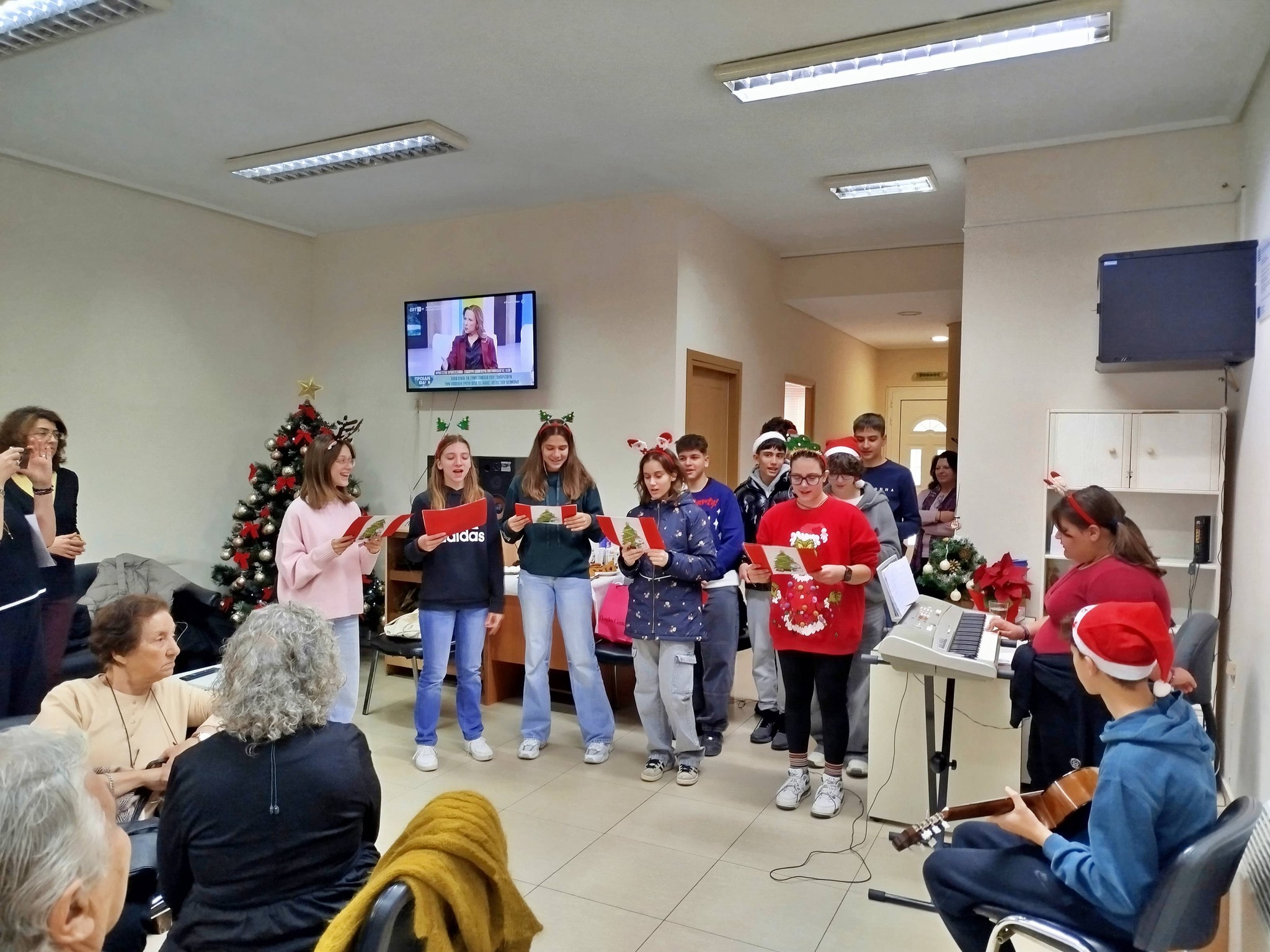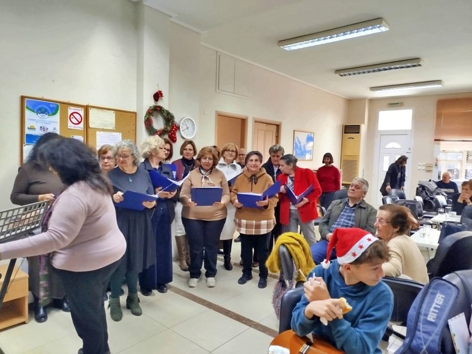 Παράλληλα, στο εορταστικό κλίμα των ημερών, πραγματοποιήθηκε δράση διαγενεακής σύνδεσης με την επίσκεψη μαθητών του 1ου Γυμνασίου Μεγάρων στο ΚΑΠΗ. Οι μαθητές έψαλαν τα χριστουγεννιάτικα κάλαντα, ενώ η χορωδία του ΚΑΠΗ ερμήνευσε δύο τραγούδια, δημιουργώντας ένα ζεστό και συγκινητικό κλίμα. Η εκδήλωση ολοκληρώθηκε με συζήτηση και ανταλλαγή ευχών, ενισχύοντας την επικοινωνία, τον αμοιβαίο σεβασμό και την αλληλεγγύη μεταξύ των γενεών.