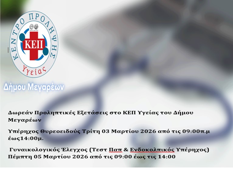 Δωρεάν προληπτικές εξετάσεις στο ΚΕΠ Υγείας του Δήμου Μεγαρέων – Αναλυτικό πρόγραμμα και οδηγίες συμμετοχής
