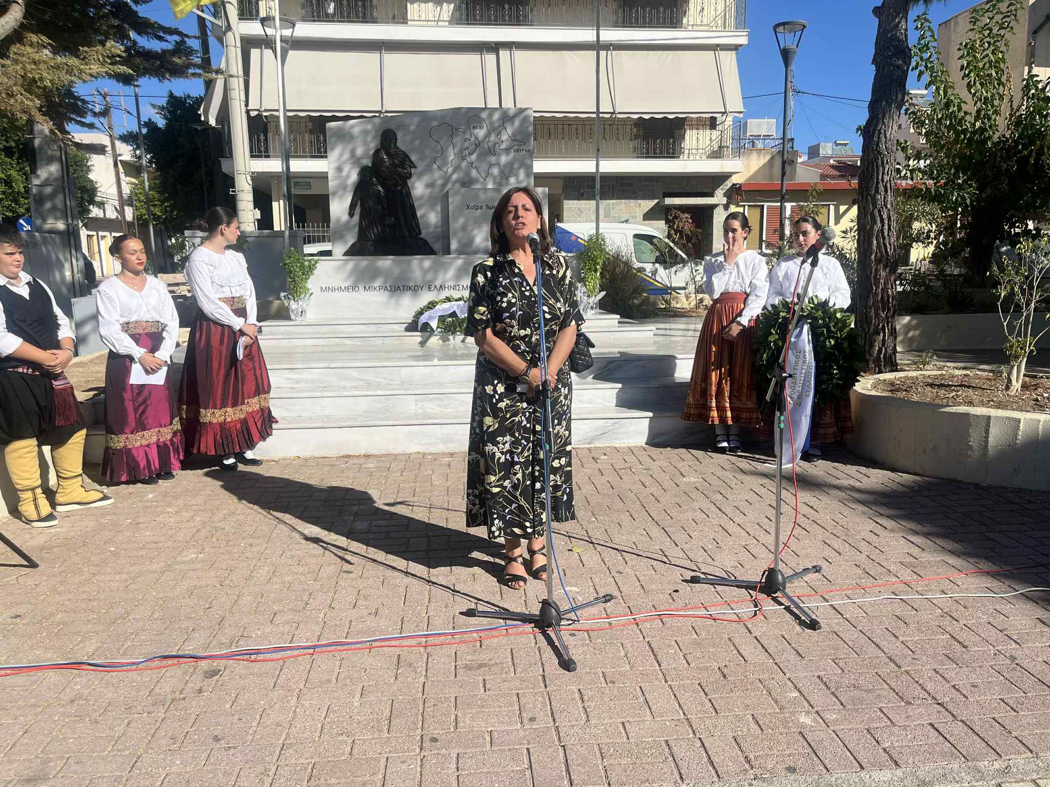 Χαιρετισμό απηύθυνε και η πρόεδρος του Προοδευτικού και Πολιτιστικού Συλλόγου «Άγιος Ιωάννης ο Θεολόγος», Ελευθερία Καλαϊτζή, ενώ η εκδήλωση ολοκληρώθηκε με απαγγελίες ποιημάτων για τη Μικρά Ασία από μαθητές και κέρασμα στα γραφεία του Συλλόγου.