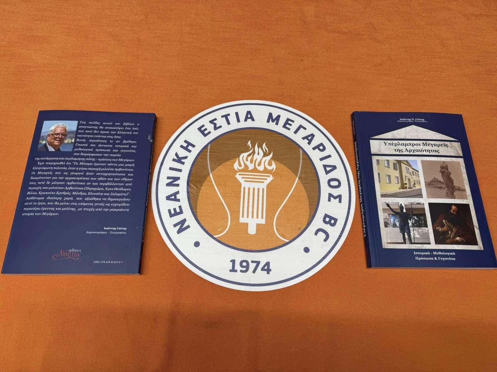 Ο συγγραφέας κ. Ιωάννης Γκίνης προσέφερε δωρεάν, για ολόκληρη τη σεζόν, το πανέμορφο και ιστορικά πολύτιμο βιβλίο του «Υπέρλαμπροι Μεγαρείς της Αρχαιότητας», το οποίο χαρίζεται σε όλους τους φιλοξενούμενους της ομάδας μας.
