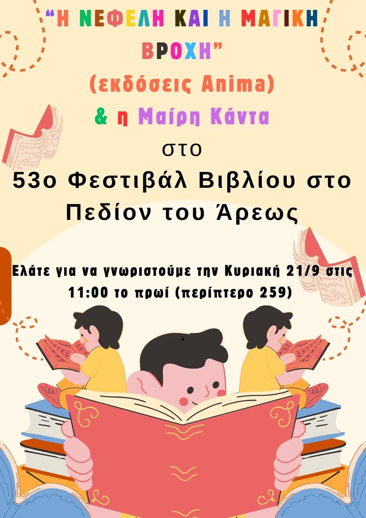 Η συγγραφέας Μαίρη Κάντα θα παρευρεθεί την Κυριακή 21 Σεπτεμβρίου 2025 στις 11:00 π.μ. στο 53ο Φεστιβάλ Βιβλίου στο Πεδίον του Άρεως, όπου θα υπογράφει το παιδικό βιβλίο της με τίτλο «Η Νεφέλη και η Μαγική Βροχή» των εκδόσεων Anima (περίπτερο 259).