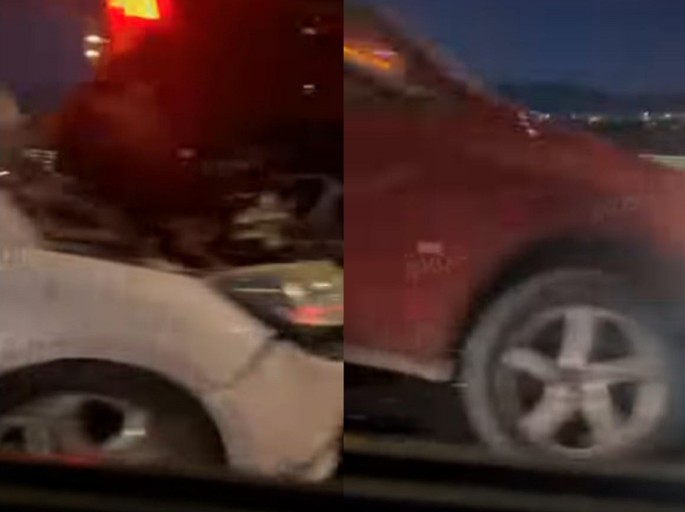 Συγκεκριμένα, 5 οχήματα συγκρούστηκαν μεταξύ τους, όπως μπορείτε να δείτε σε βίντεο που έστειλε αναγνώστης στην ιστοσελίδα enikos.gr.