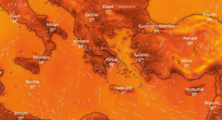 Καύσωνας / Δείτε live την πορεία του φαινομένου – Πού θα φτάσουν 45αρια