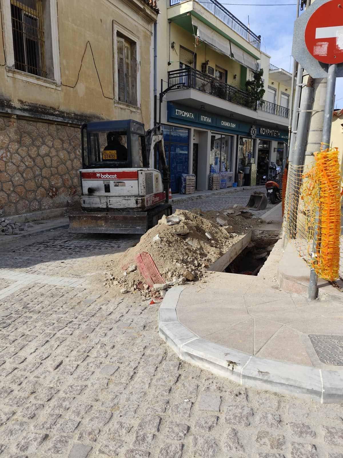 Στο συγκεκριμένο σημείο, κυβόλιθοι που τοποθετήθηκαν πρόσφατα στο πλαίσιο έργων ανάπλασης φαίνεται πως αποξηλώνονται εκ νέου, για την τοποθέτηση δικτύων οπτικών ινών. Η εξέλιξη αυτή δημιουργεί εύλογα ερωτήματα σχετικά με τον σχεδιασμό και τον συντονισμό των έργων που υλοποιούνται στην πόλη.