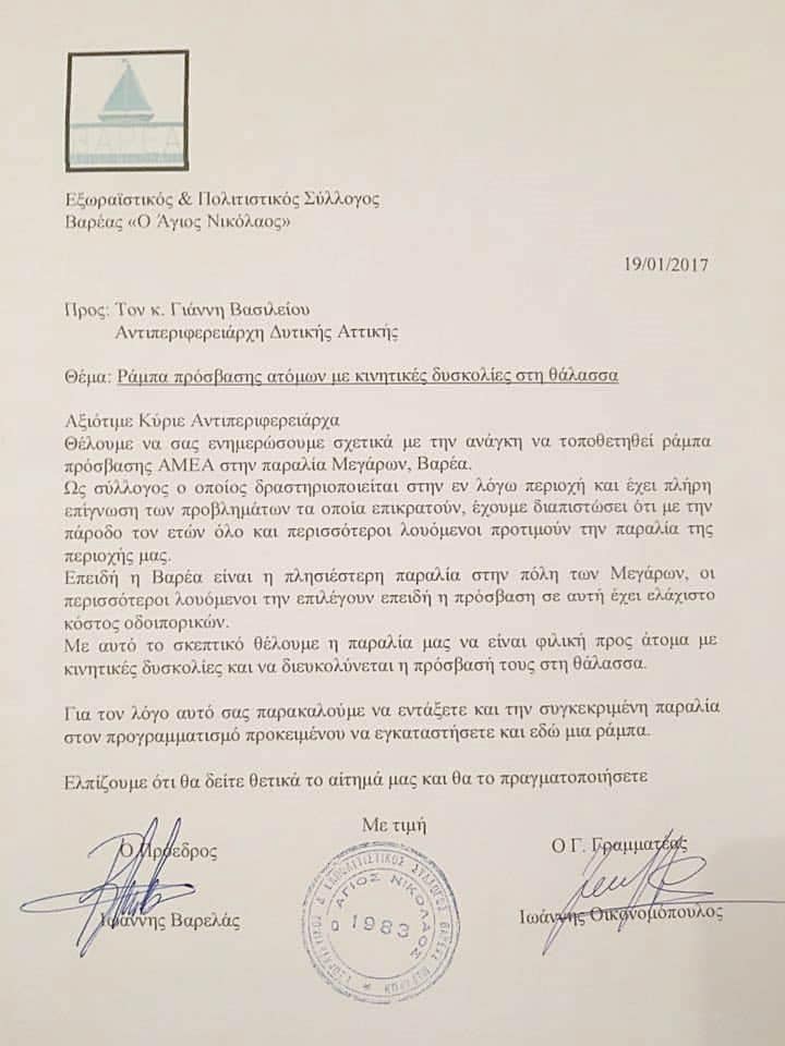 Με ανακοίνωση του ο Εξωραϊστικός & Πολιτιστικός Σύλλογος Βαρέας Μεγάρων “O Άγιος Νικόλαος” έκανε γνωστό το κάτωθι.