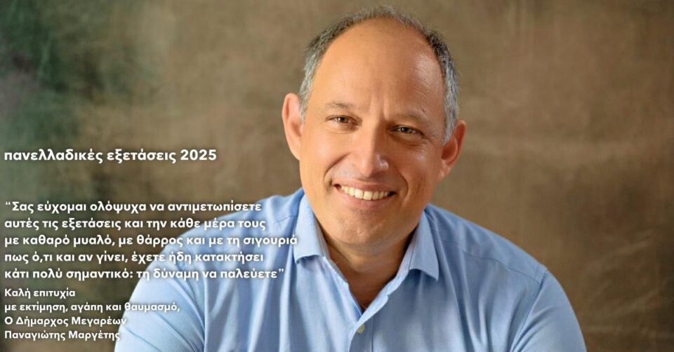 Μήνυμα του Δημάρχου Μεγαρέων Παναγιώτη Μαργέτη προς τους μαθητές και τις μαθήτριες ενόψει των Πανελλαδικών Εξετάσεων 2025