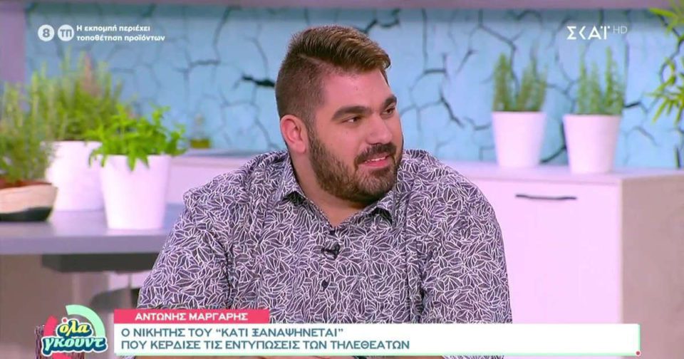 Ο συμπολίτης μας Αντώνης Μάργαρης κέρδισε το γνωστό τηλεοπτικό παιχνίδι του ΣΚΑΪ, “Κάτι ξαναψήνεται“, με παρουσιάστρια την Κωνσταντίνα Σπυροπούλου.