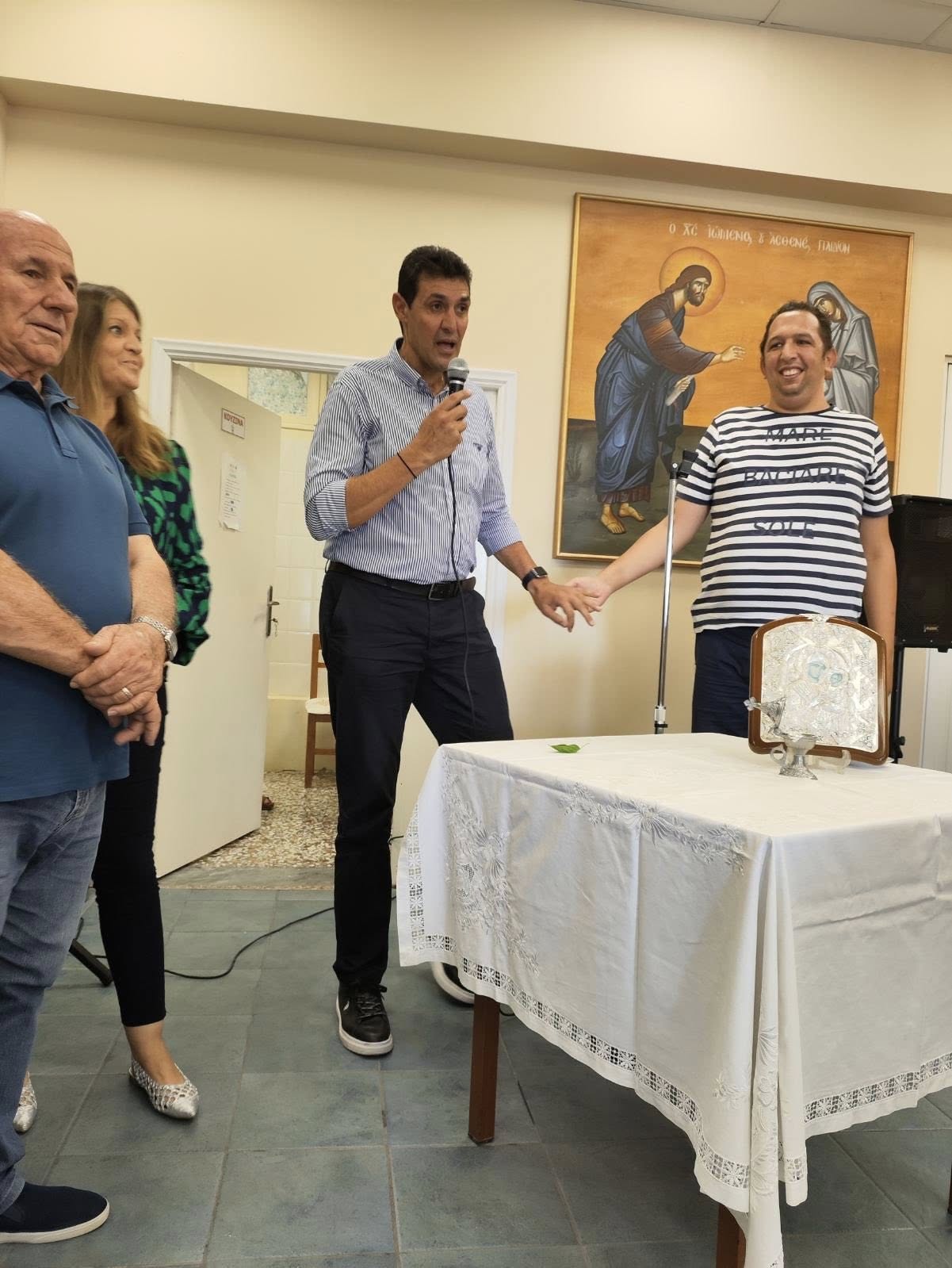 Στον αγιασμό που τελέστηκε το πρωί της Δευτέρας στον Σύλλογο ΑμεΑ Μεγάρων παρευρέθηκε ο πρώην αντιπεριφερειάρχης Δυτικής Αττικής και νυν περιφερειακός σύμβουλος, Κλέανθης Βαρελάς. Η τελετή πραγματοποιήθηκε από τον πατέρα Γεώργιο, σηματοδοτώντας την έναρξη μιας νέας «σχολικής» χρονιάς για τα μέλη και τους ωφελούμενους του συλλόγου.