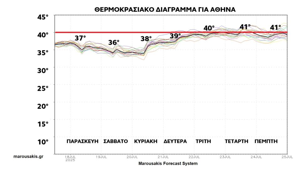 6. Η έξοδος από αυτό το μεγάλης διάρκειας κύμα καύσωνα τοποθετείται χρονικά μέσα στο ερχόμενο Σαββατοκύριακο και ενδέχεται να γίνει με τρόπο “βίαιο” σε ότι αφορά την αλλαγή της ατμοσφαιρικής κυκλοφορίας.