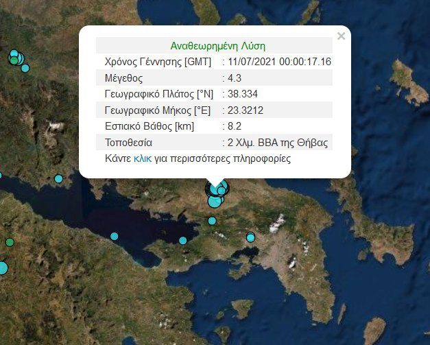 Σεισμική δόνηση μεγέθους 4,3 βαθμών της κλίμακας Ρίχτερ σημειώθηκε στις 03:00 τα ξημερώματα της Κυριακής στη Θήβα, σύμφωνα με τις μετρήσεις του Γεωδυναμικού Ινστιτούτου.