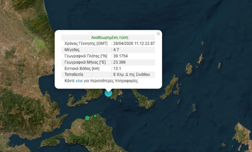 Σεισμός 4,7 Ρίχτερ σημειώθηκε λίγο μετά τις δύο το μεσημέρι στην Σκιάθο και έγινε αισθητός και στην Αττική.