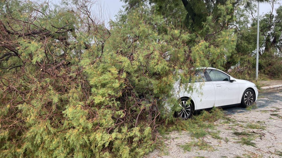 Ισχυροί άνεμοι προκάλεσαν την πτώση μεγάλων αλμυρικιών (δέντρων), με αποτέλεσμα να δημιουργηθούν προβλήματα στην παραλιακή ζώνη. Ένα από τα δέντρα κατέπεσε πάνω σε σταθμευμένο όχημα, προκαλώντας σημαντικές υλικές ζημιές. Ευτυχώς, δεν σημειώθηκαν τραυματισμοί.