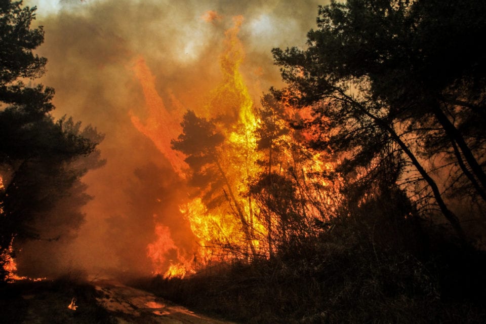 Η φωτιά καίει πευκοδάσος. Στο σημείο για την κατάσβεση της πυρκαγιάς βρίσκονται οχήματα της Πυροσβεστικής Υπηρεσίας για την κατάσβεση της
