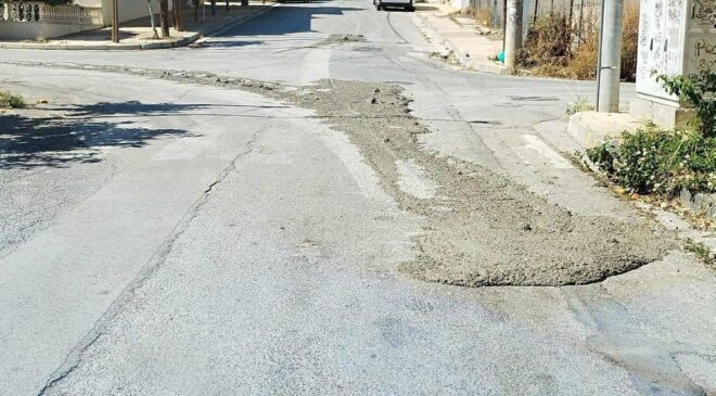 ???? Οι οδηγοί που κινούνται στην περιοχή καλούνται να είναι ιδιαίτερα προσεκτικοί, καθώς το σημείο παραμένει ακάλυπτο και το μπετόν δεν έχει στεγνώσει.