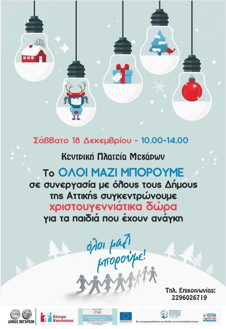 “ΌΛΟΙ ΜΑΖΙ ΜΠΟΡΟΥΜΕ” ΣΥΛΛΟΓΗ ΧΡΙΣΤΟΥΓΕΝΝΙΑΤΙΚΩΝ ΔΩΡΩΝ ΓΙΑ ΤΑ ΠΑΙΔΙΑ ΠΟΥ ΕΧΟΥΝ ΑΝΑΓΚΗ